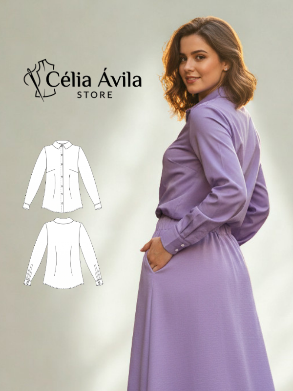 Molde digital da Camisa Consuelo. Modelagem profissional, pronta para imprimir e costurar peças incríveis para as suas alunas lindas.
