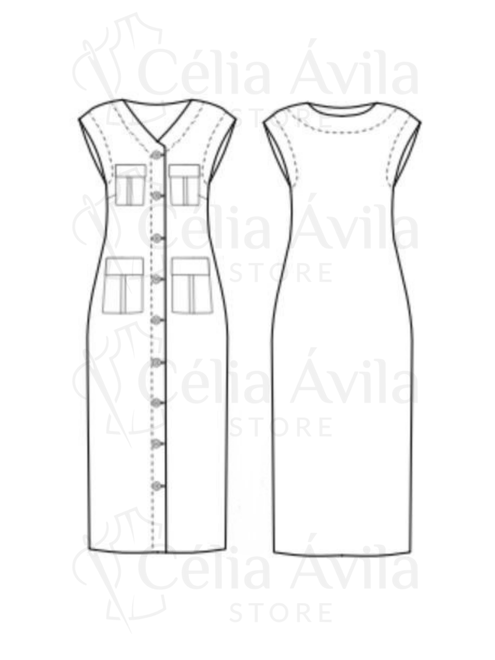 Margens: Este molde está com 1 cm de margem de costura e 3 cm de bainha.