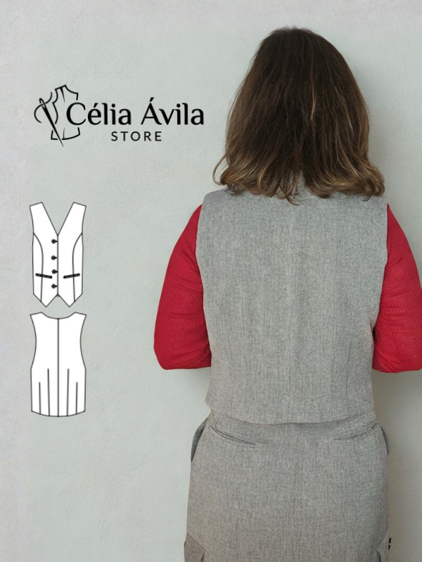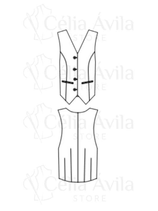 Molde digital do Colete Bianca. Modelagem profissional com acabamento de alfaiataria, pronta para imprimir e costurar.