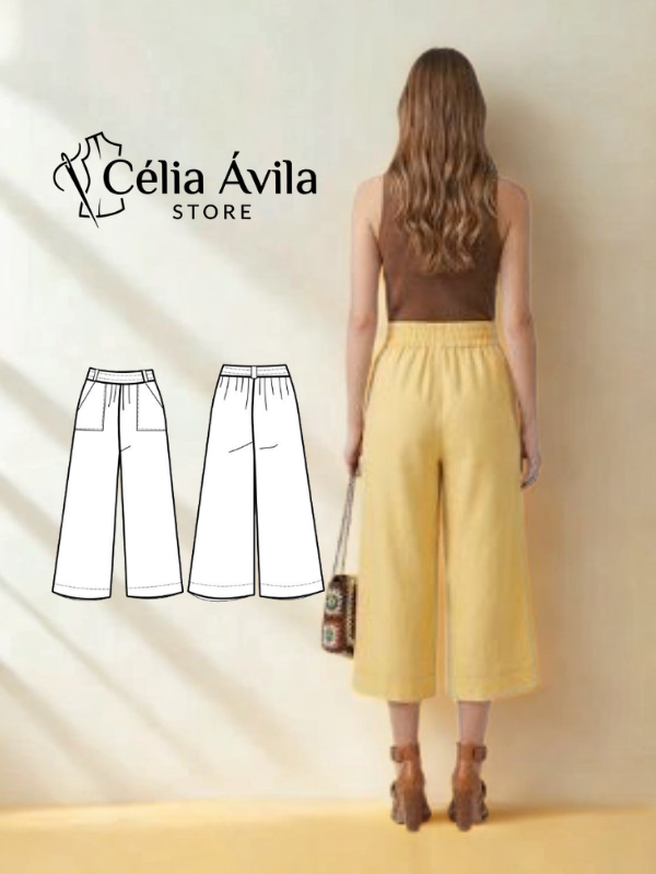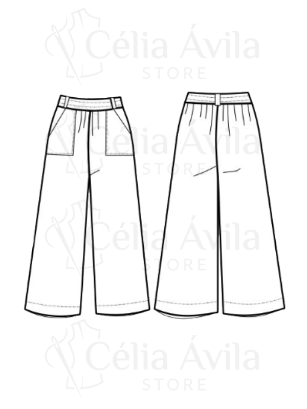 Cós e Ajuste: A peça é estruturada com cós reto, sendo exigida a aplicação de um elástico de 4 cm para garantir a correta estruturação e ajuste na cintura.